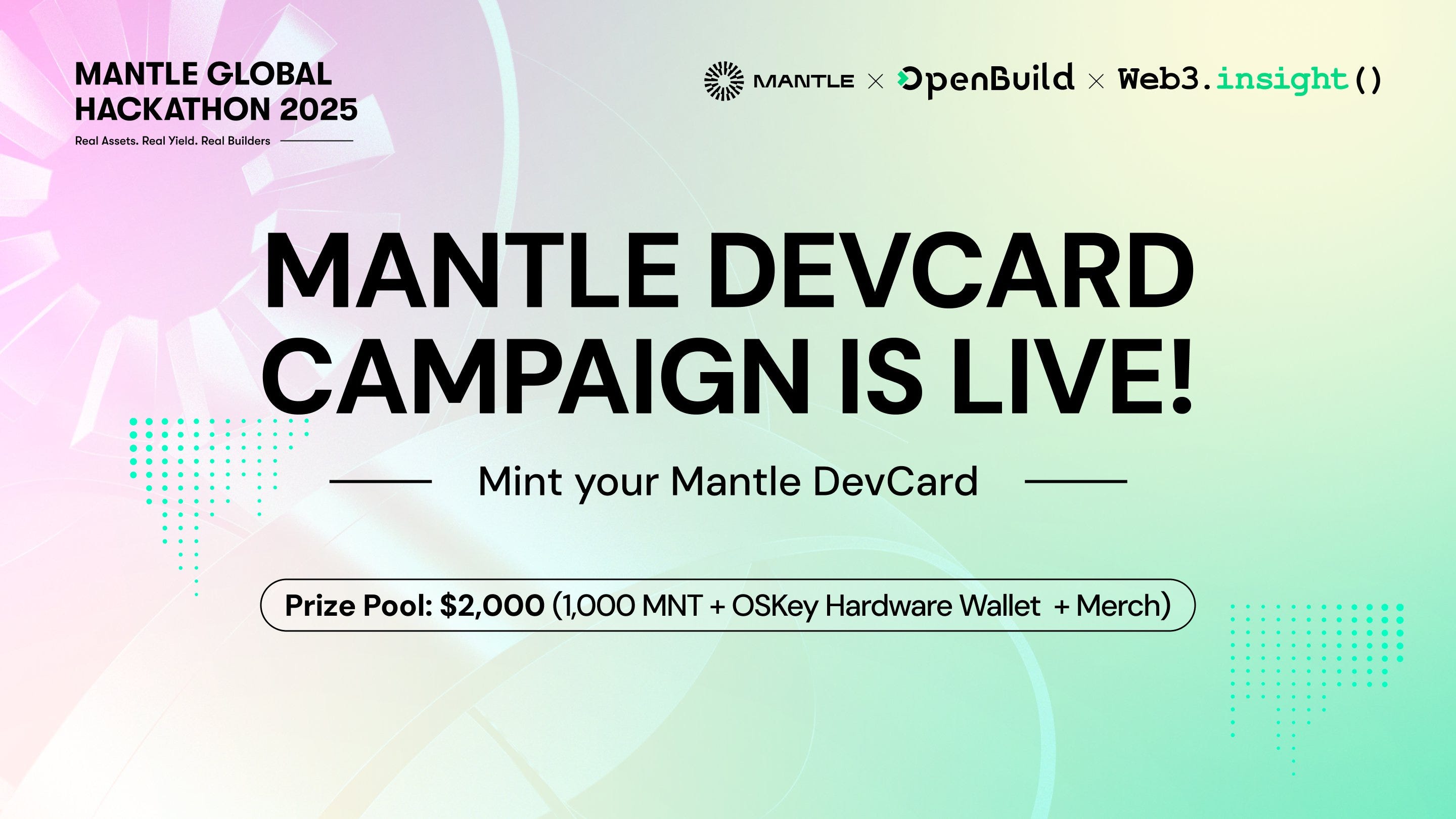 ①DevCardミント+Hackathon登録者向け抽選(スワッグ、OSKeyハードウェアウォレット、100 MNT山分け)