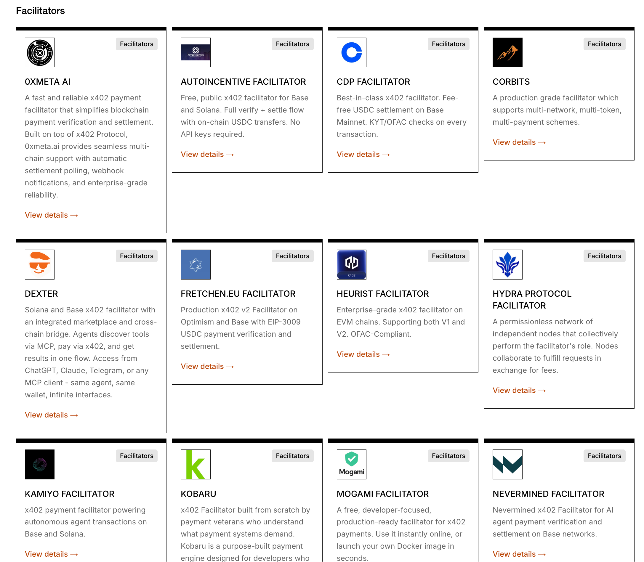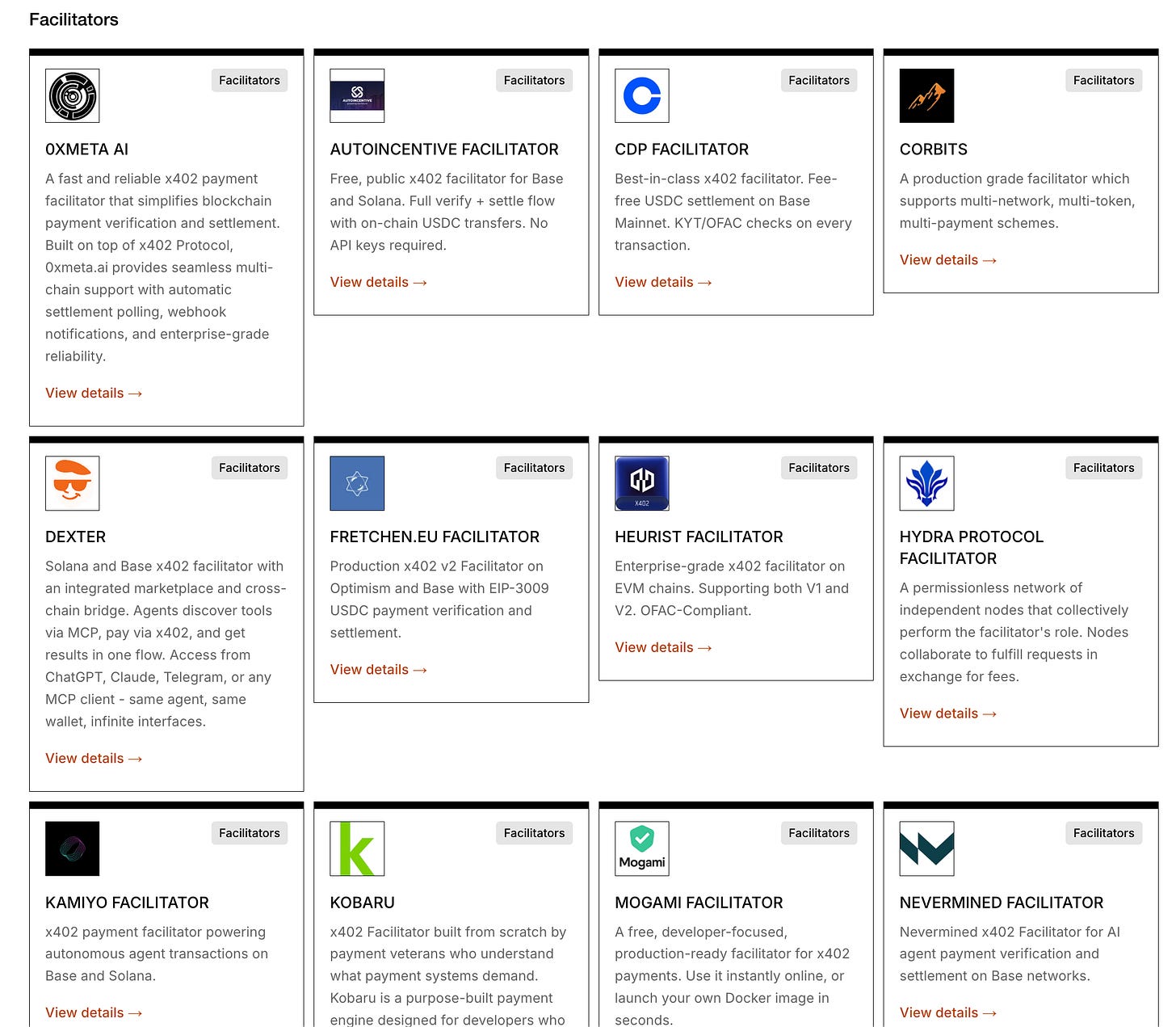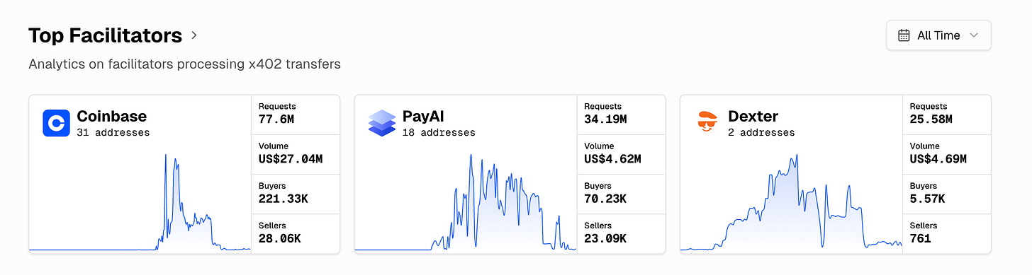 ファシリテーターではCoinbase, PayAI, Dexterの順になっています。
